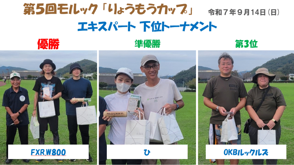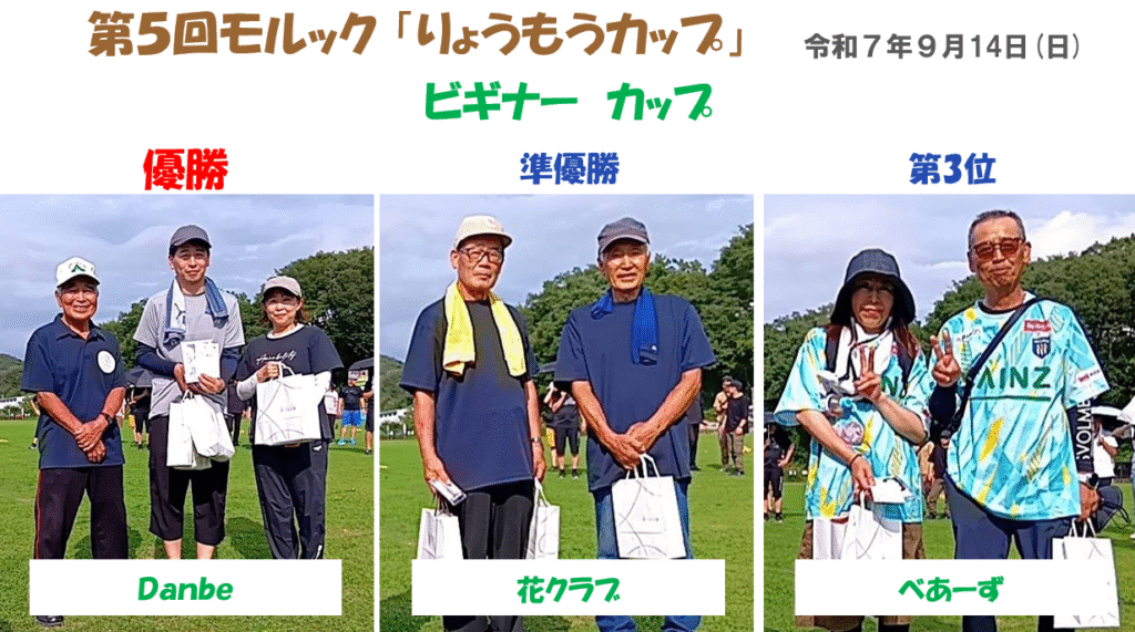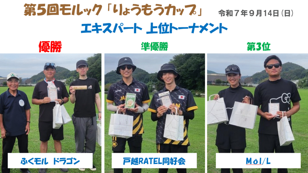 第5回モルック「りょうもうカップ」入賞チームは、以下の通りです。